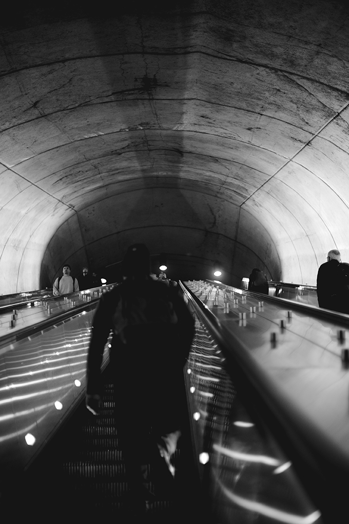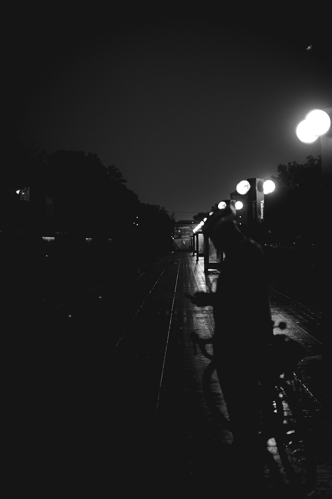 I love taking a camera along. Yesterday it was my old Nikon D700 — almost twenty years old — paired with a 50-year-old Nikkor manual 50mm f/1.4 lens. The camera’s an absolute brick, but the combo is perfect for these dim, early commutes — especially in black and white.