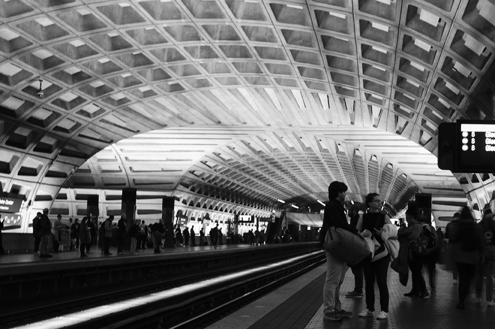 The Metro, for me, seems to be a favorite muse. I travel frequently on the D.C. Metro, a 45-minute ride that takes me from the close-in suburbs of Maryland, through downtown D.C., and a couple of stops across the Potomac into Virginia. It’s not a bad stretch for thinking or people-watching — I only have to switch trains once.