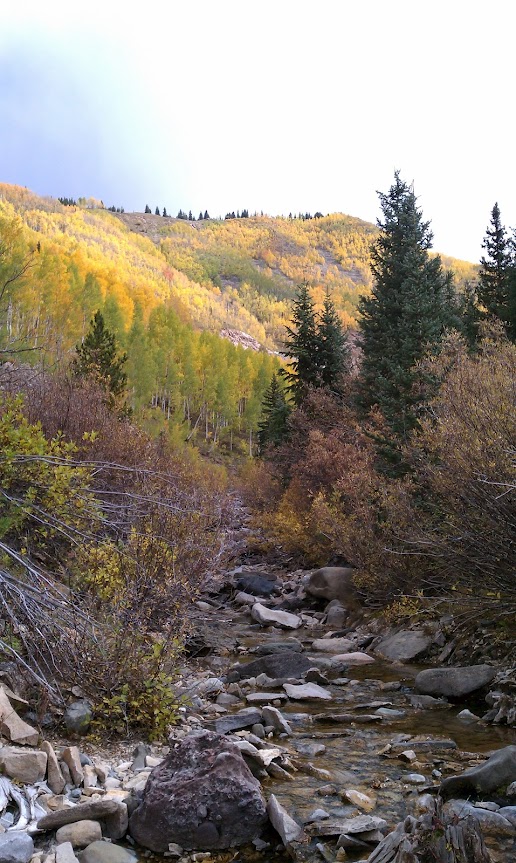 I love this time of year. The air has a crispness to it. Gone are the days of the wind bearing a warmth and instead there is a slight chill to every breeze. Cloudy mornings clear to reveal fresh, white snow on the peaks. The mountains erupt with color and the evergreens are contrasted sharply by the vibrant gold aspen groves. The golden leaves add interest to the local well buffed, dirt biking and hiking trails. There is a musty smell of fallen leaves when you venture into the forest. In all of my travels, I have experienced few things as beautiful as standing in and surrounded by a bright gold aspen grove and watching the sun slant through the leaves. When a stiff breeze hits the trees, they release their leaves for the year and the forest becomes a snow globe of golden aspen leaves. Truly breathtaking.